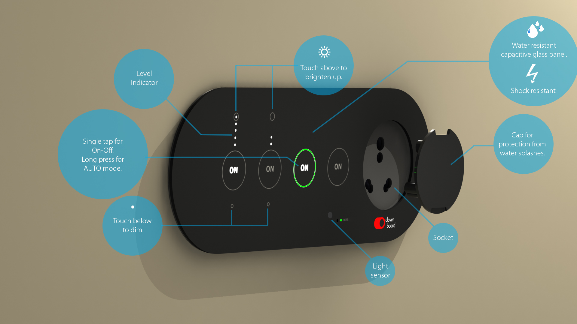 CloverBoard is a Wi-Fi enabled replacement to your conventional switch that gives you convenience, energy saving, and security.